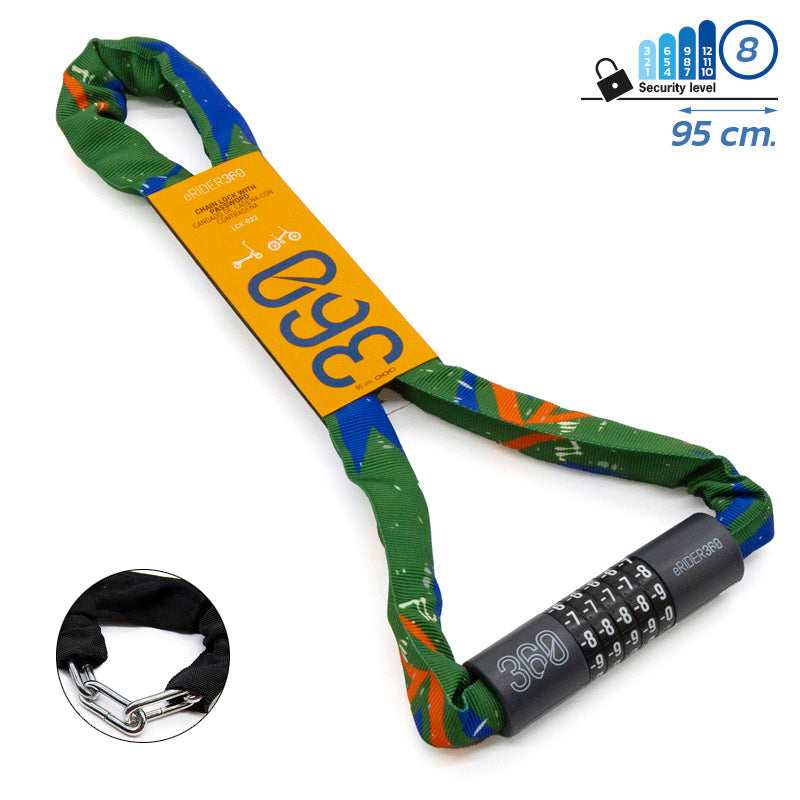 Cet antivol à combinaison est un accessoire de sécurité essentiel pour protéger votre trottinette électrique contre le vol lors de vos stationnements en ville. Il se compose d'une solide chaîne en acier inoxydable d'une longueur de 0,95 mètre, recouverte d'une housse en tissu vert pour protéger la peinture de votre véhicule. Son mécanisme à combinaison personnalisable vous évite de transporter une clé et offre un verrouillage rapide et fiable. C'est la solution idéale pour une sécurité quotidienne et une tranquillité d'esprit, que vous soyez au travail, à l'école ou en cours de route. En tant que pièce compatible, cet antivol offre un excellent rapport qualité-prix sans compromis sur la fiabilité. Sa conception robuste avec des matériaux résistants aux intempéries assure une protection durable et une performance optimale dans toutes les conditions de mobilité urbaine. C'est une alternative économique et testée pour sécuriser efficacement votre équipement. Marque(s) : eRIDER360 Modèle(s) compatible(s) : eRIDER360 Nous expédions cette pièce détachée sous 48 à 72 heures ouvrées avec la livraison gratuite, et elle est couverte par notre garantie de 6 mois. Faites confiance à AS Réparation, votre spécialiste en pièces détachées pour trottinettes électriques, pour équiper votre véhicule avec des accessoires pratiques et fiables qui prolongent sa durée de vie en toute sécurité.
